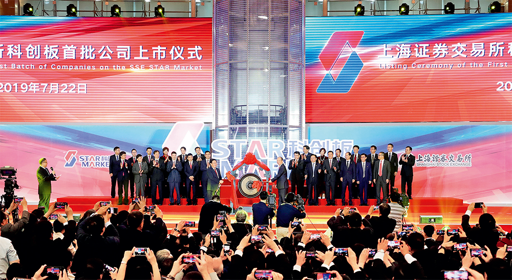 上海证券交易所举行的科创板首批公司上市仪式现场(2019年7月22日摄) 方喆摄/本刊