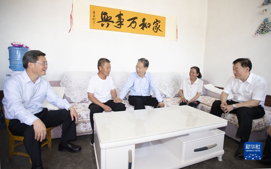 7月4日至7日,中共中央政治局常委、全国人大常委会委员长赵乐际在山西调研。这是7月6日,赵乐际在左权县麻田镇南会村与人大代表深入交流。 新华社记者 李涛 摄