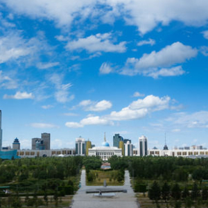 这是2024年7月1日拍摄的哈萨克斯坦首都阿斯塔纳的天际线。新华社记者 王建华 摄