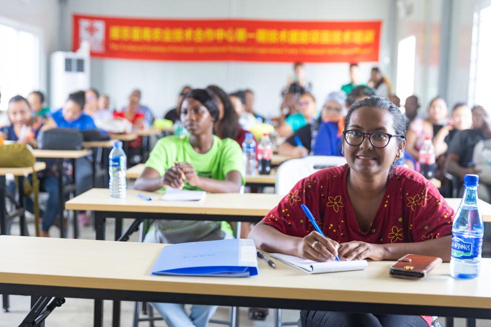 4月3日,在位于苏里南萨拉马卡区的中国援苏里南农业技术合作中心,学员在学习中国农业历史和饮食文化。