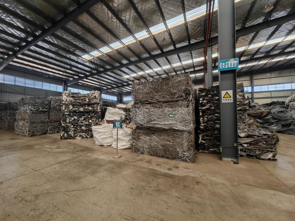 在国网重庆电力再生资源循环利用中心,铝等再生资源品被压缩打包,等待运往下游企业。新华社记者 周凯 摄