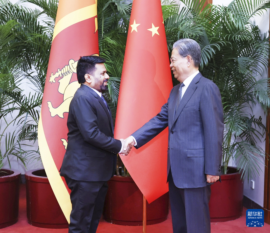 1月16日,全国人大常委会委员长赵乐际在北京会见斯里兰卡总统迪萨纳亚克。新华社记者 刘卫兵 摄