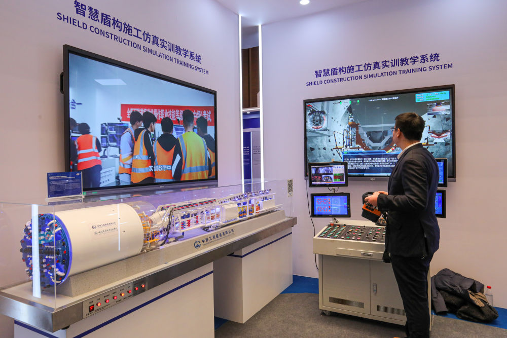 2024年1月30日,工作人员在上海举办的“数智未来”教育展上演示智慧盾构施工仿真实训教学系统。2024世界数字教育大会以“数字教育:应用、共享、创新”为主题,围绕教师数字素养与胜任力提升、数字化与学习型社会建设、数字教育评价、人工智能与数字伦理、数字变革对基础教育的挑战与机遇、教育治理数字化与数字教育治理等议题展开讨论。