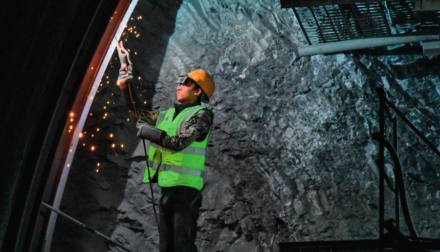 中铁二十局的工人在西渝高铁康渝段明灯山隧道内施工(2025年1月15日摄)。王曦摄/本刊