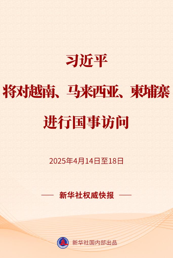 习近平将于4月14日至18日对越南、马来西亚、柬埔寨进行国事访问。