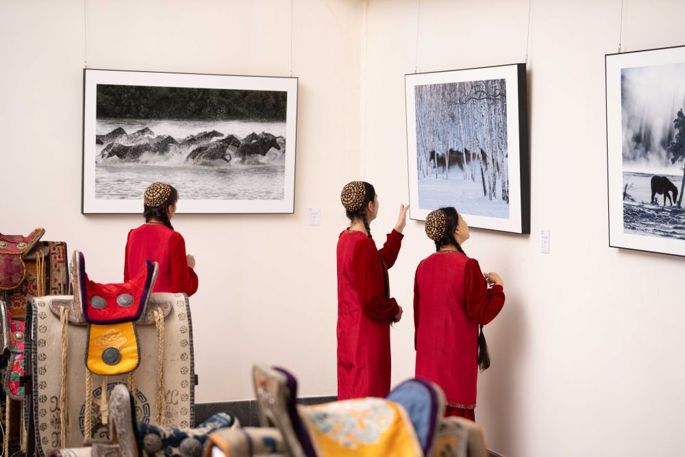 2025年6月3日,人们在土库曼斯坦阿什哈巴德参观“骐骥驰骋——2025中国马文化展”。展览从中国源远流长的马文化切入,连接中土两国人民对于马的审美喜好与情感寄托。