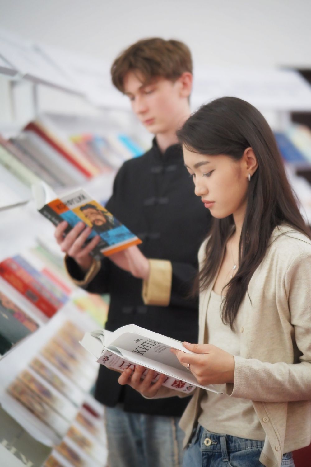 2025年5月31日,在哈萨克斯坦法拉比国立大学,学生在“中国丝路文学周”活动现场阅读图书。2025哈萨克斯坦“中国丝路文学周”开幕式暨“丝路新韵:文学让生活更美好”主题作家座谈会在哈萨克斯坦法拉比国立大学成功举办。后续,还将有多场文学交流活动在哈萨克斯坦主要城市举办。