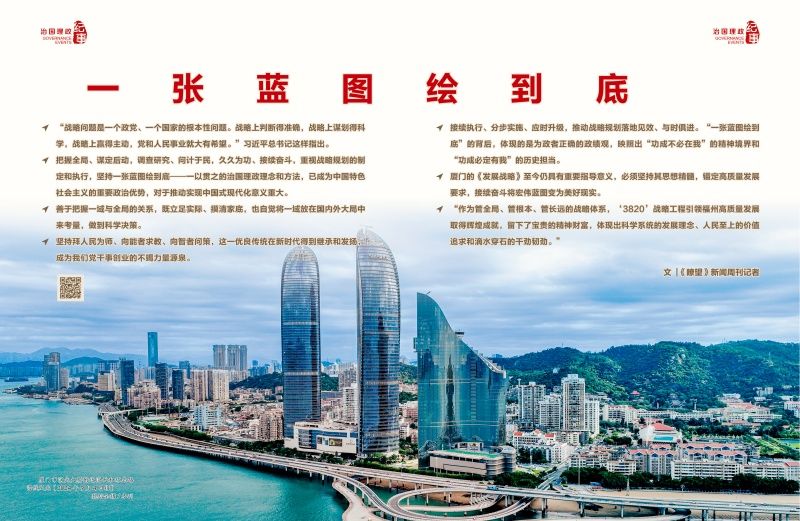 ◇厦门的《发展战略》至今仍具有重要指导意义,必须坚持其思想精髓,锚定高质量发展要求,接续奋斗将宏伟蓝图变为美好现实。