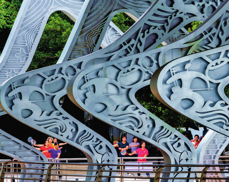 晨练者在厦门市演武大桥观景平台附近锻炼健身(2024年9月4日摄)。魏培全摄/本刊