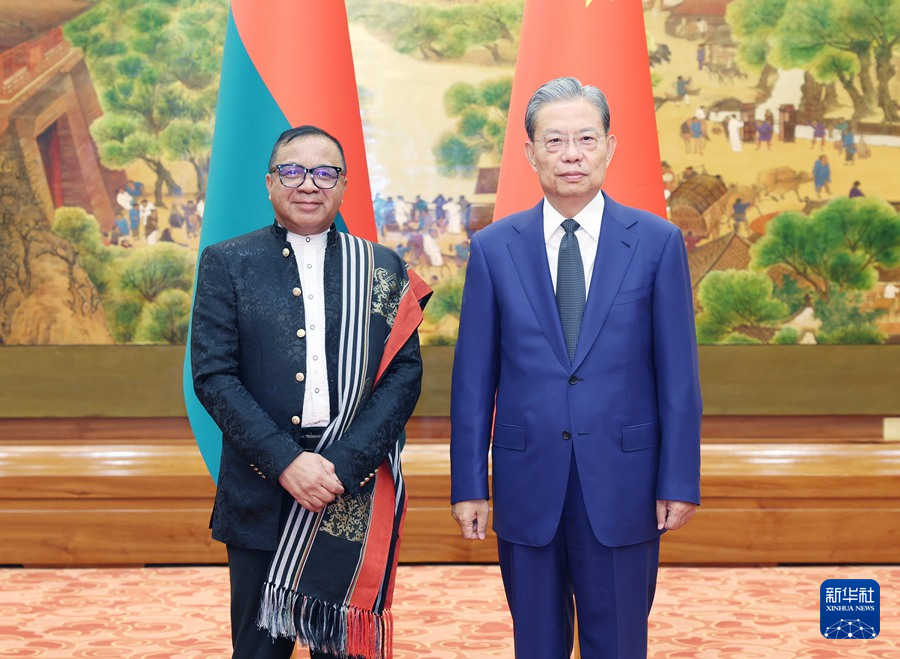 7月22日,全国人大常委会委员长赵乐际在北京会见马达加斯加参议长拉瓦卢马纳纳。新华社记者 姚大伟 摄