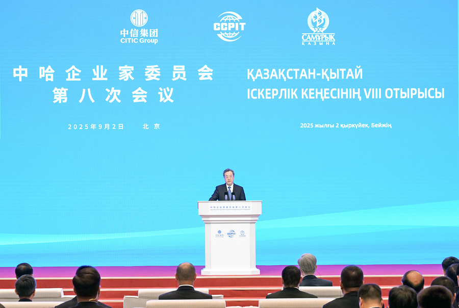 9月2日,中共中央政治局常委、国务院副总理丁薛祥在北京出席中哈企业家委员会第八次会议开幕式并致辞。新华社记者 高洁 摄