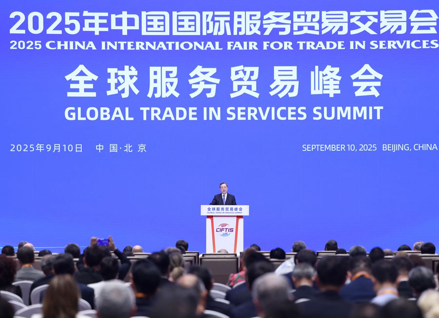 新华社北京9月10日电 2025年全球服务贸易峰会10日在北京举行。中共中央政治局委员、北京市委书记尹力在峰会上宣读了习近平主席的贺信。中共中央政治局常委、国务院副总理丁薛祥出席峰会并发表主旨讲话。