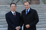 温家宝举行仪式欢迎波兰总理图斯克