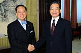 温家宝会见出席世界经济论坛第三届新领军者年会的新加坡国务资政吴作栋