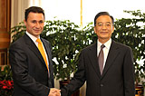 温家宝会见出席世界经济论坛第三届新领军者年会的马其顿总理格鲁埃夫斯基