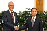 温家宝与新加坡总理李显龙举行会谈