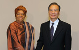 温家宝会见利比里亚总统