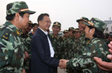 温家宝看望参加堰塞湖抢险的武警官兵
