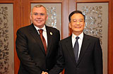 温家宝会见出席世界经济论坛第三届新领军者年会的乌克兰副总理涅梅里亚