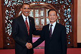 温家宝总理会见美国总统奥巴马