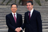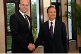 温家宝会见丹麦首相拉斯穆森