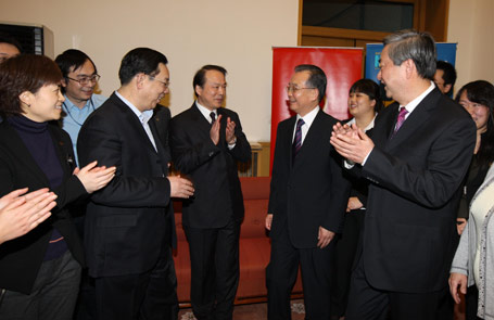温家宝总理第二次与网友在线交流并看望新华社采编人员