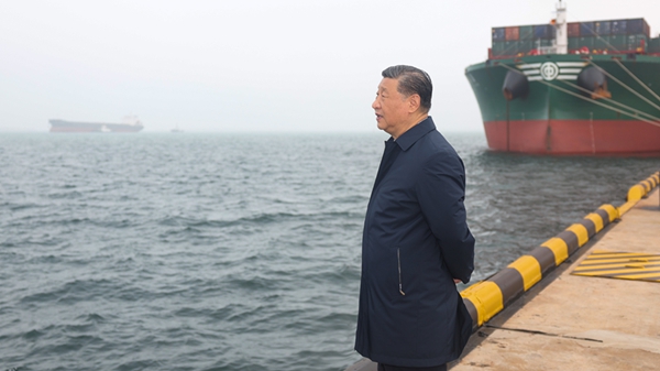 5月22日下午,习近平总书记在山东省日照市考察调研。他来到日照港,了解当地推进港口智慧化绿色化建设、扩大对外开放等情况。