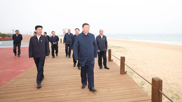 22日下午,习近平总书记在山东省日照市考察调研。他来到阳光海岸绿道,了解当地加强海岸线生态保护修复、提高人民生活品质等情况。