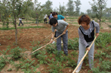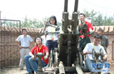 图为延安行第五组组员模拟操作37高炮,进行防雹演练