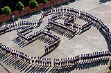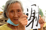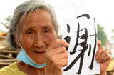 山西运城老人瓶盖组字纪念汶川地震一周年