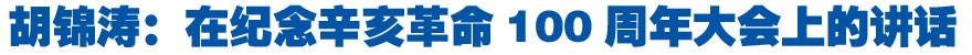 纪念辛亥革命100周年大会举行 胡锦涛作重要讲话