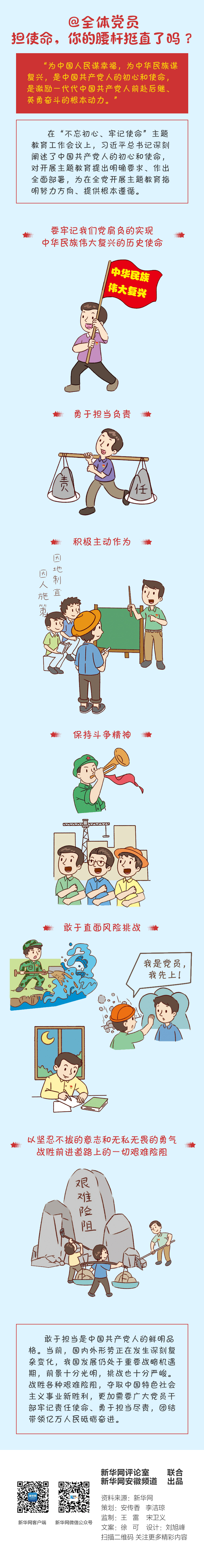 使命呼唤担当,担当成就未来。开展“不忘初心、牢记使命”主题教育,担使命是要牢牢把握的总要求之一。担使命,就是要牢记我们党肩负的实现中华民族伟大复兴的历史使命,勇于担当负责,积极主动作为,保持斗争精神,敢于直面风险挑战。