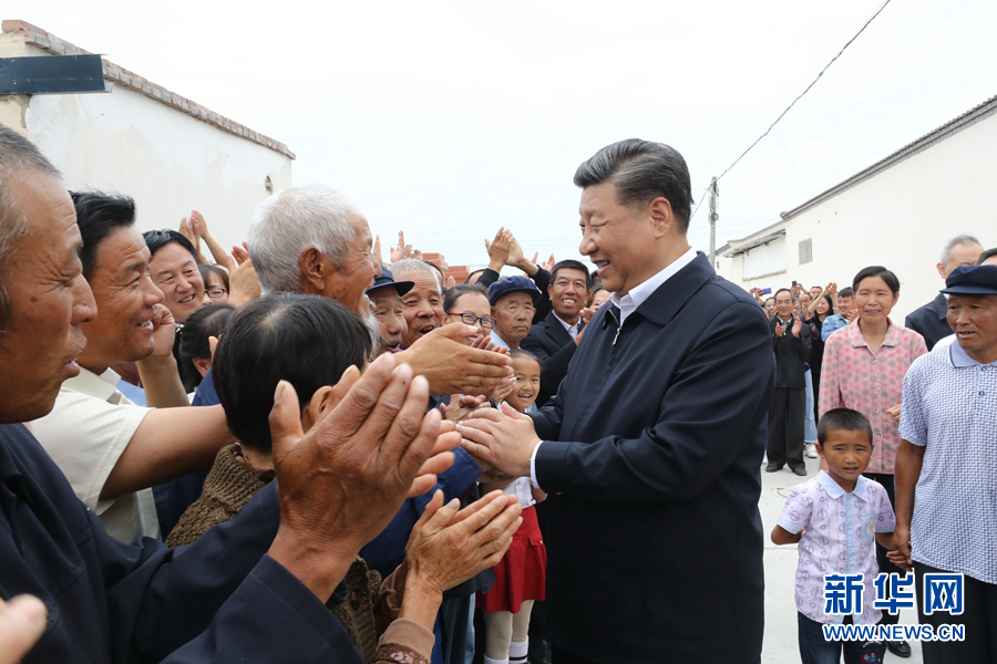8月19日至22日,中共中央总书记、国家主席、中央军委主席习近平在甘肃考察。这是21日上午,习近平在武威市古浪县黄花滩生态移民区富民新村同村民亲切交谈。 新华社记者 鞠鹏 摄