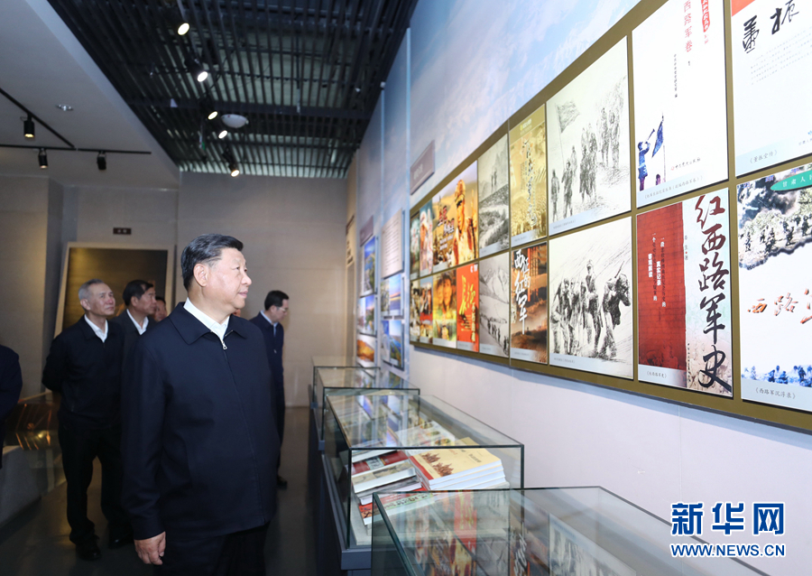 8月19日至22日,中共中央总书记、国家主席、中央军委主席习近平在甘肃考察。这是20日上午,习近平在张掖市高台县参观中国工农红军西路军纪念馆。 新华社记者 鞠鹏 摄