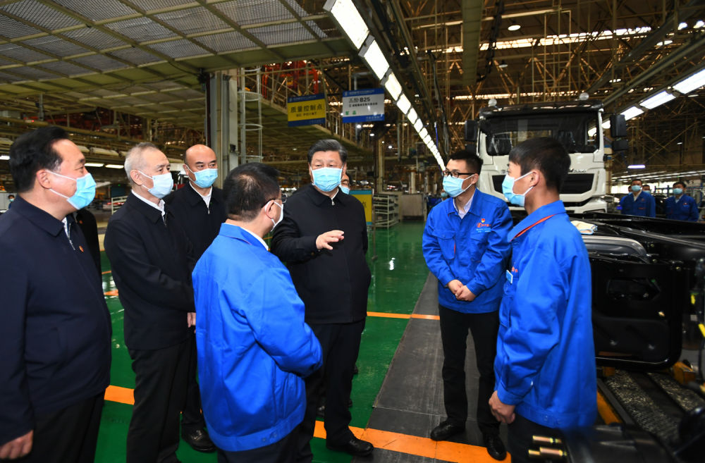 4月22日,习近平在陕西汽车控股集团有限公司了解企业复工复产情况。新华社记者 谢环驰 摄