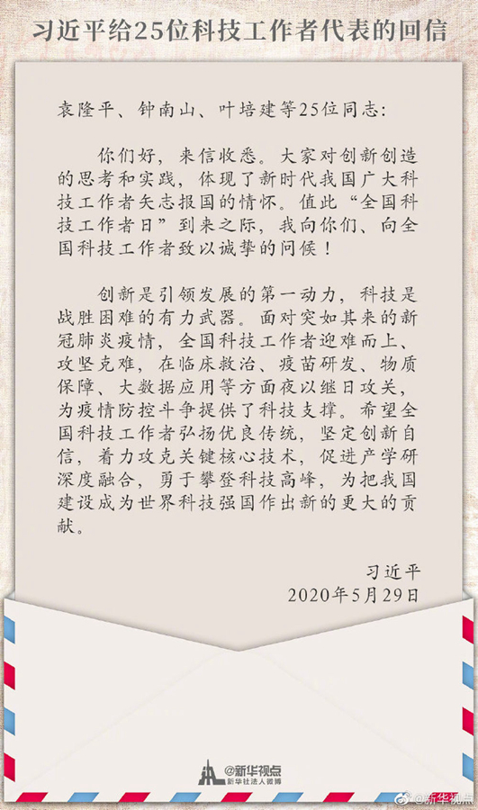 两会刚刚闭幕。5月29日,一封充满暖意的回信送到了25位科技工作者的手中。