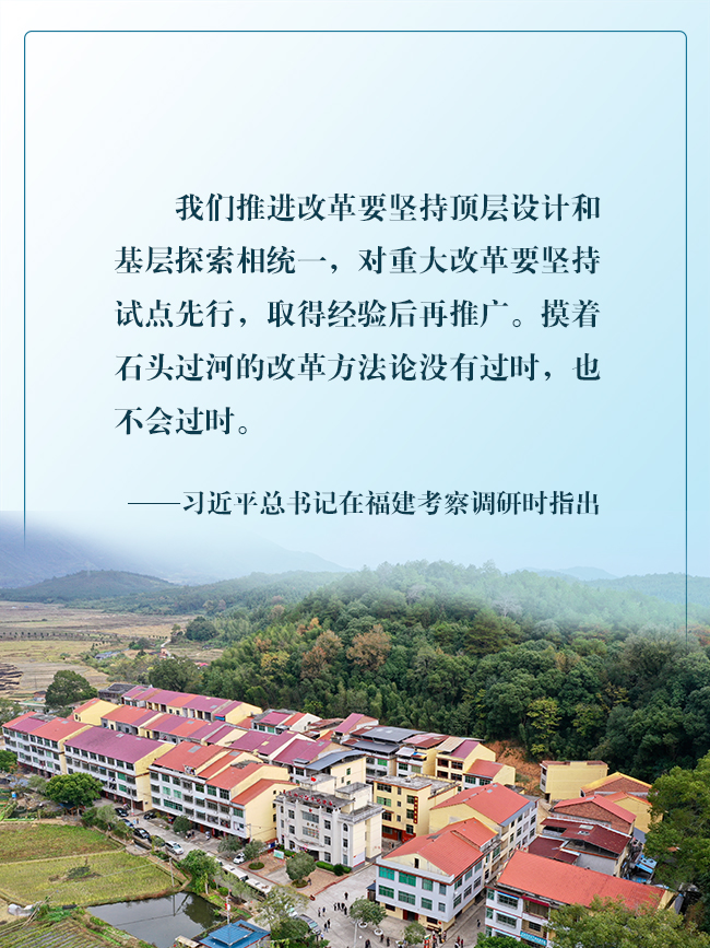改革是前无古人的崭新事业,没有现成经验可以借鉴,只能在不断实践中探索前进,在总结经验中把握规律。摸着石头过河就是摸规律,从实践中获得真知,是富有中国特色、符合中国国情的改革方法。在这方面,福建积极探索、开拓创新,形成了改革的“福建样本”。这个山多地少的省份,过去受制于旧有林业政策僵化、山林产权不清晰,当地百姓无法“靠山吃山”,更谈不上生态保护。30多年来,集体林权制度、“林长制”、生态文明试验区等改革举措以先试点后推广的方式在全国推进,“绿水青山就是金山银山”的理念已成为指导改革实践的“金句”。事实证明,摸到了石头,过河心里才能有底;掌握了规律,改革才能稳步推进。
