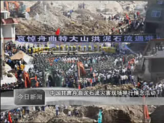 甘肃舟曲泥石流灾害现场举行悼念活动
