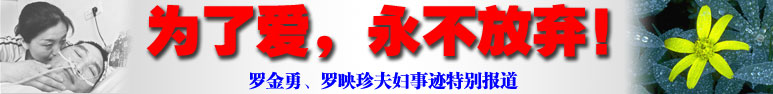 | 一名警察妻子写给“植物人”丈夫的600篇日记 | | “老公,我是不是像个单恋的小姑娘?还是我们之间的感情本来就是一种灵魂之恋?如今我唯一的愿望就是等你病好了,我们能相互陪伴着过完余生,所以你一定要快点醒过来。”在云南省第一人民医院神经外科402室,30岁的丈夫罗金勇静静地躺在病床上,一动也不动。27岁的妻子罗映珍一面轻轻按摩着丈夫的躯体,一面深情地念着头天晚上写下的日记。她相信丈夫能够听到她的呼唤,他的眼睑似乎眨动了一下,仿佛还有晶莹的泪光闪动。 [详细报道] | | |