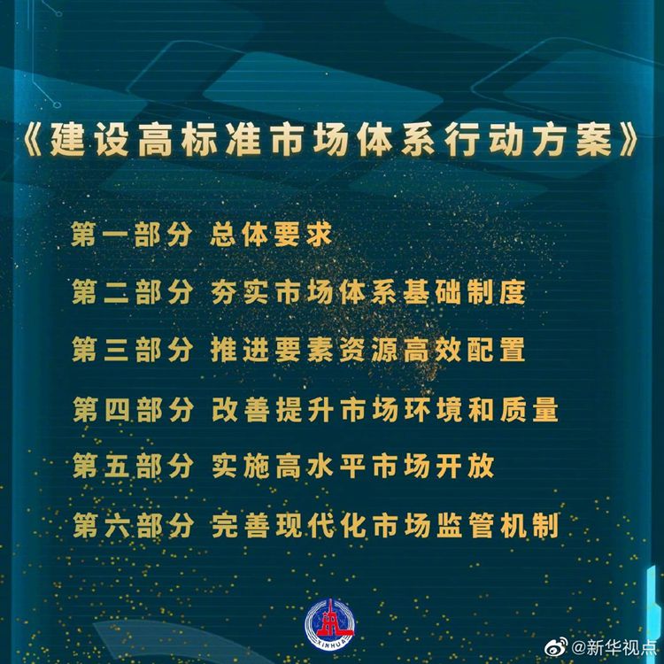 中办、国办印发的《建设高标准市场体系行动方案》31日公布,为指导今后5年我国推进高标准市场体系建设明确了行动指南。方案从基础制度、要素市场、环境质量、市场开放、市场监管五个方面,提出51条具体举措。未来5年,这些改革举措将竞相落地,带来深刻改变。(安蓓、刘文昕)