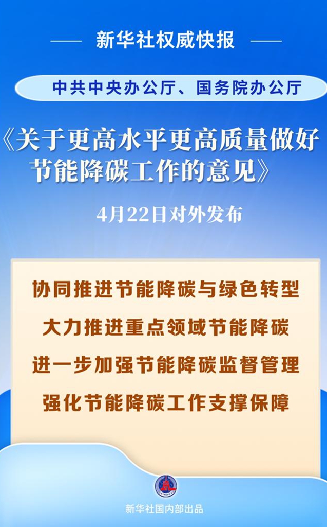 新华社权威快报丨事关节能降碳工作 中办、国办重磅文件对外发布