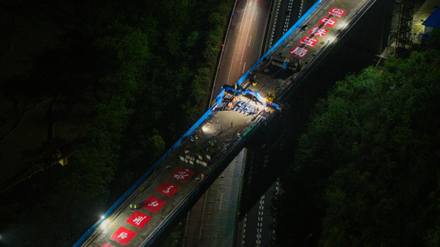 邵永高铁控制性工程刘家院子跨二广高速特大桥连续梁合龙