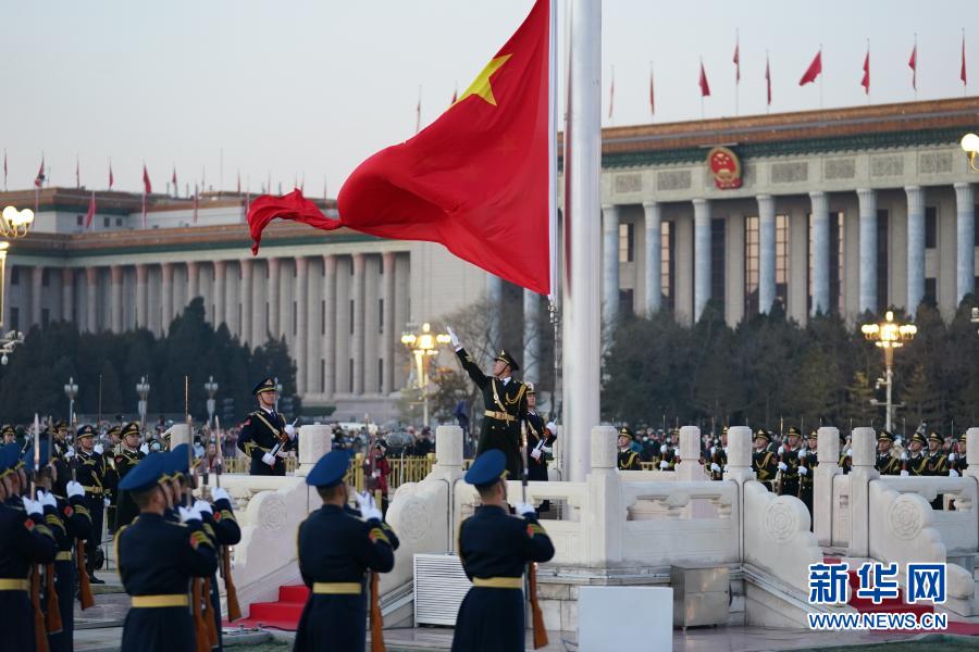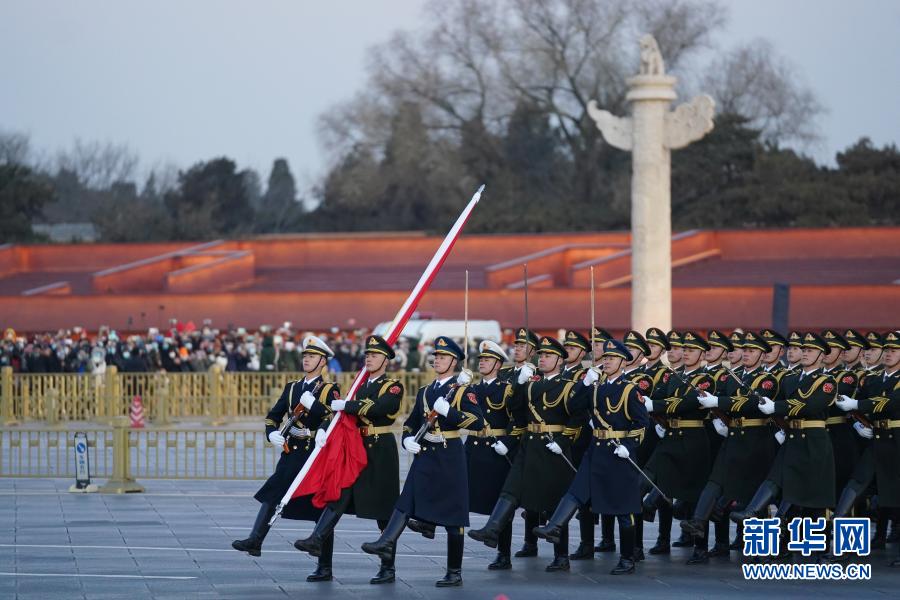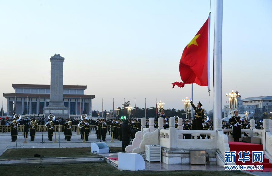 1月1日晨,北京天安门广场举行隆重的升国旗仪式。新华社记者 鞠焕宗 摄