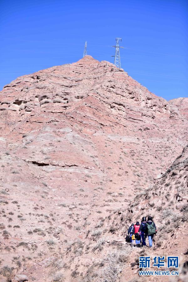 2020年1月7日,国家电网青海电力检修公司民和运维分部输电一班成员在巡线途中上山。该班成员主要负责保障青海东部地区循化撒拉族自治县、化隆回族自治县主电网和公伯峡电站电力外送输电线路的巡视检修工作。这里地处青藏高原边缘地带,平均海拔2200米。山脊犹如刀片一般,被当地人俗称“刀片梁”。