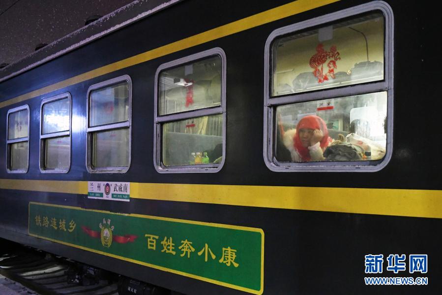2020年1月10日,由兰州开往武威南的7505次列车停靠在永登站,一名旅客望向窗外。由甘肃兰州开往武威南的7505次列车是一列老式绿皮车,串联起兰州和武威两座城市之间的十几座小站。因为票价便宜、乘坐方便,它成为沿线乡村群众进城购物、售卖农产品、探亲访友、外出打工的首选交通工具。