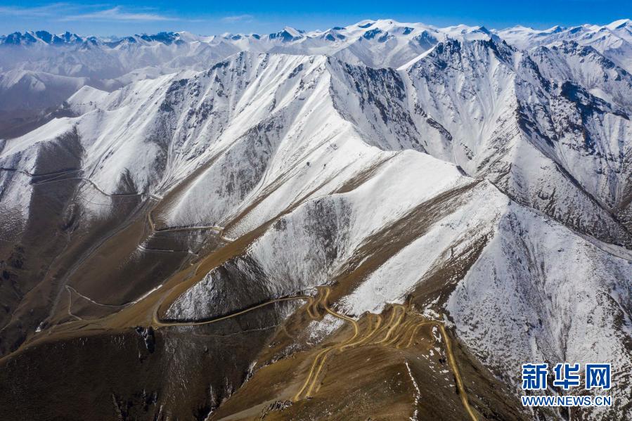 这是2020年5月1日拍摄的通往新疆喀什地区叶城县西合休乡亚尔阿格孜村的道路蜿蜒在崇山峻岭间(无人机照片)。