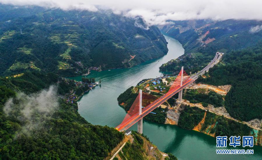 这是2020年10月1日拍摄的贵州剑榕高速清水江特大桥(无人机照片)。