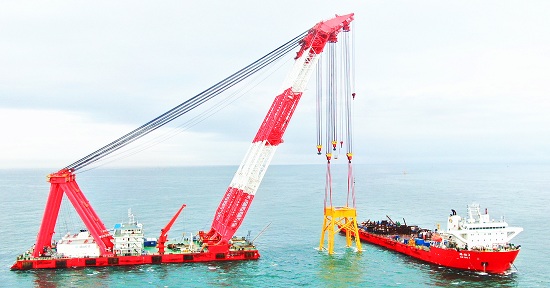 去年8月9日,随着一声令下,长宽各30米、高45米、总重1160吨的吸力筒导管架基础缓缓起吊入海,现场人员精准控制着吸力筒下沉过程中产生的压力。随着海底监测画面中吸力筒负压沉贯深度达到标定值,27号风机基础顺利完成安装工序,标志着全球首台海冰地区吸力筒导管架风机基础及国内首台吸力筒风机基础成功实施,开创了中国海上风电领域先河。