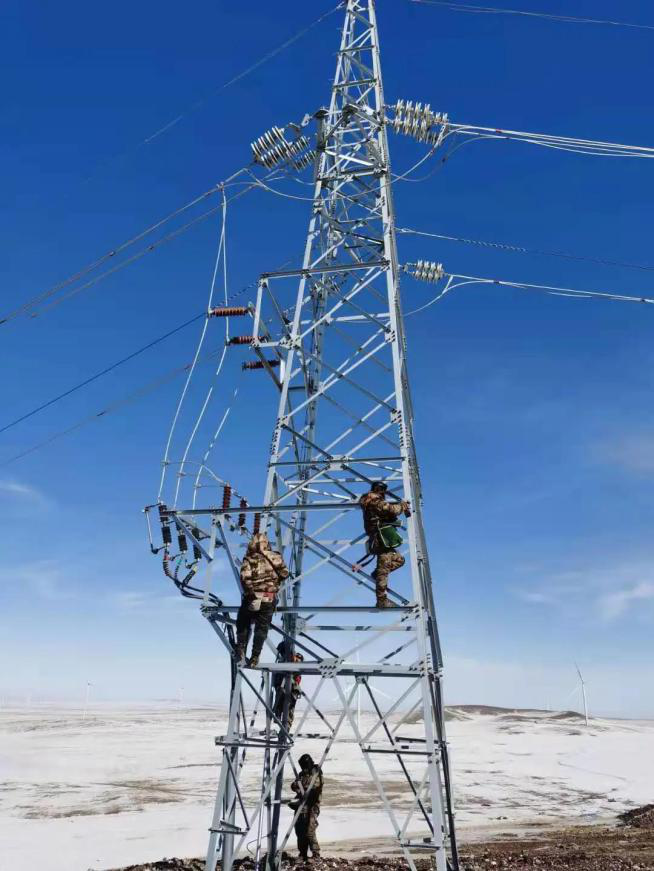 图为国家能源集团国华投资巴音塔风电场开展线路消缺工作