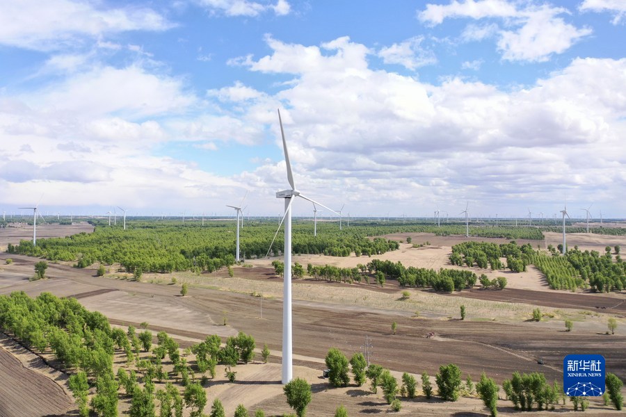 这是在吉林省白城市通榆县兴隆山镇拍摄的风力发电站。新华社发(张玉博 摄)